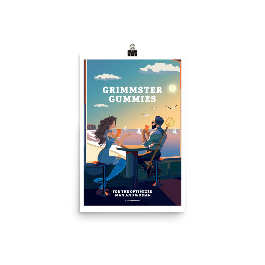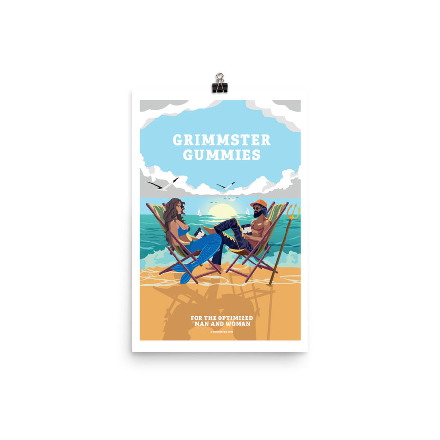 Grimmster Gummies Neptune and Mermaid Beachside Poster
