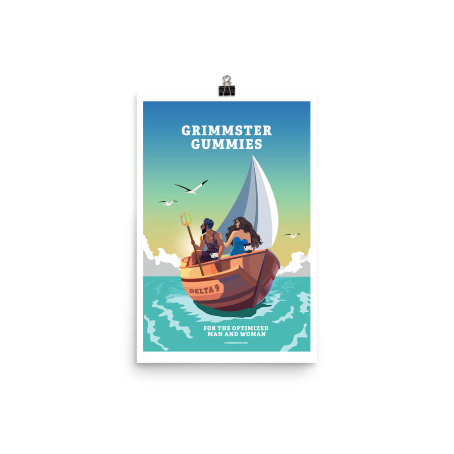 Grimmster Gummies Neptune and Mermaid Sailboat Poster