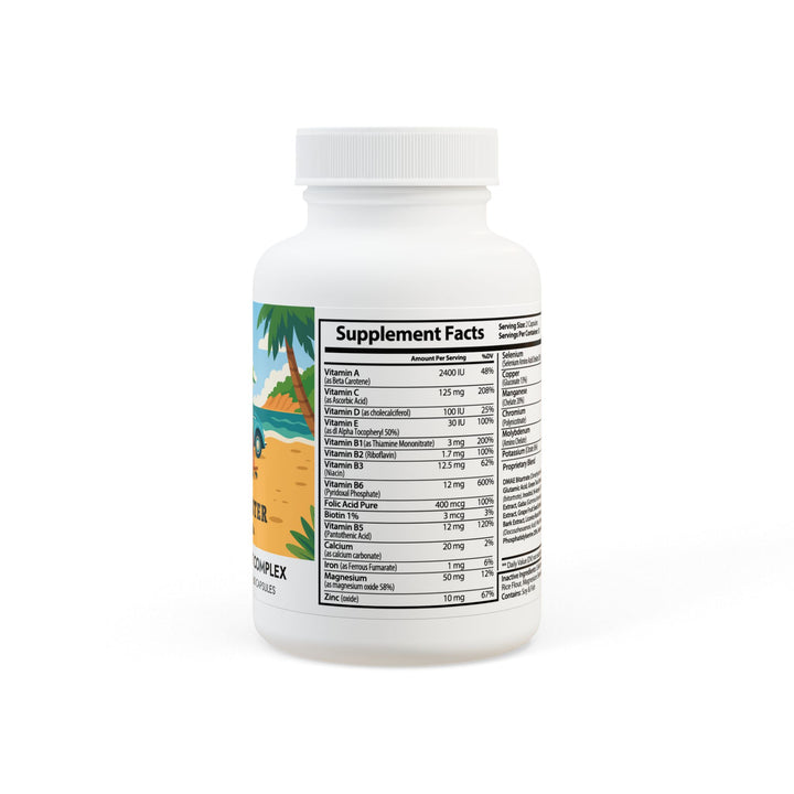 Vitamins A, C, D, E, B1, B2, B3, B5, B6, Pure Folic Acid, Biotin, essential minerals like Calcium, Iron, Magnesium, Zinc, Selenium, Copper, Manganese, Chromium, Potassium, plus brain-boosting nutrients such as L-Glutamine, Green Tea Extract, Bacopa Extract, Inositol, N-Acetyl L-Tyrosine, Bilberry Fruit Extract, GABA, Grape Seed Extract, Grapefruit Seed Extract, and Olive Leaf.
