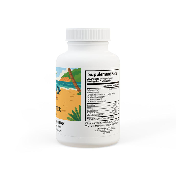 It features Makzyme-Pro, a powerful enzyme blend that includes Fungal Protease, Lactobacillus acidophilus, Lactobacillus casei, Lactobacillus plantarum, Bromelain, Papain, Fungal Lipase, Fungal Lactase, and Alpha Galactosidase all working together to support a healthy gut.