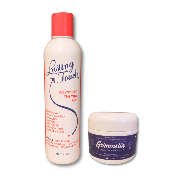 Get the best of both worlds: The Cooling pain relief of Grimmster Joint Therapy Cream and the Warming Relief of Lasting Touch Gel