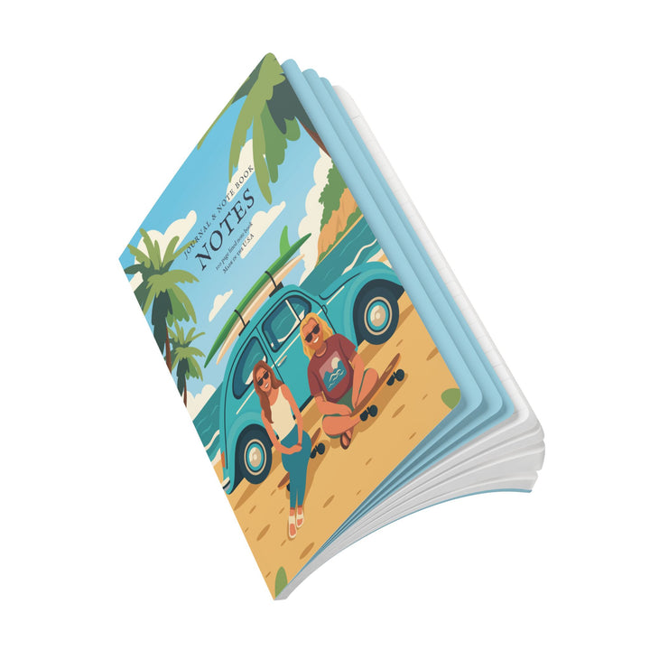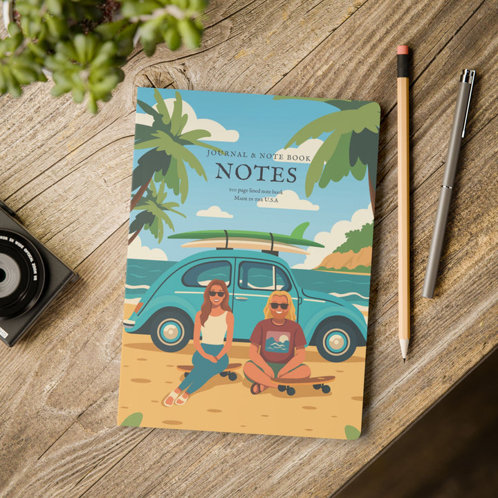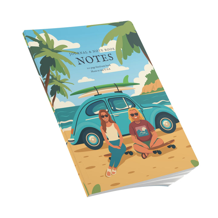 Capture the laid-back beach vibes with this VW Bug with Surfboards softcover journal. Perfect for those who love the beach, surfing, and retro aesthetics. Ideal for beach lovers, surfers, and travelers. Relevant for summer, beach holidays, travel enthusiasts, and surf culture.