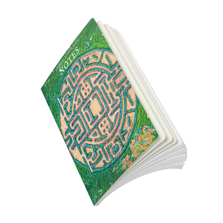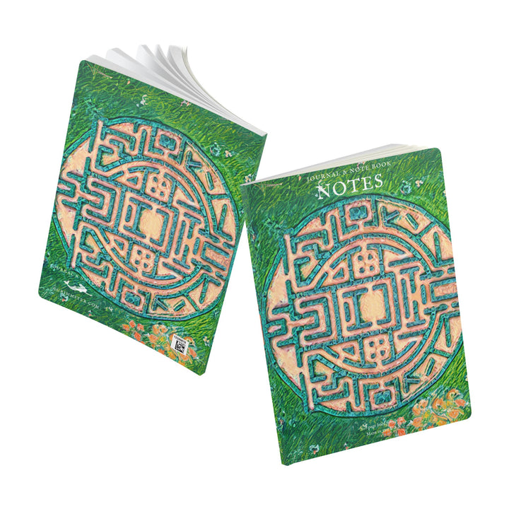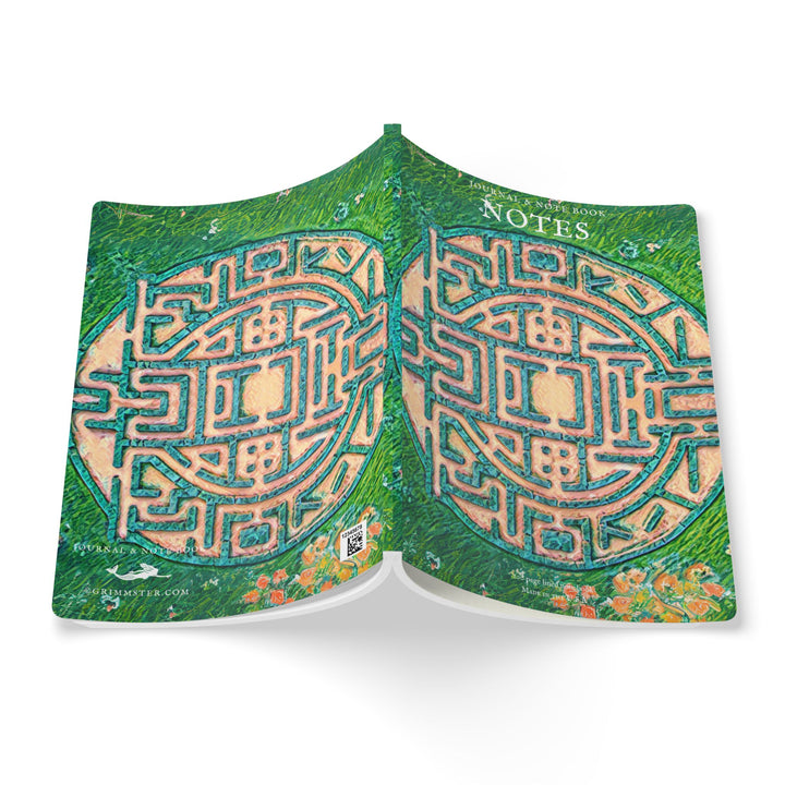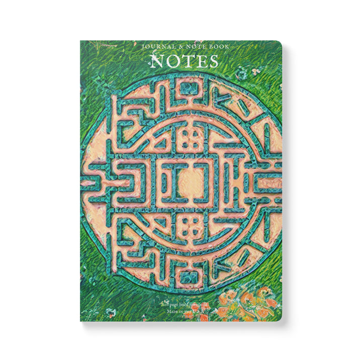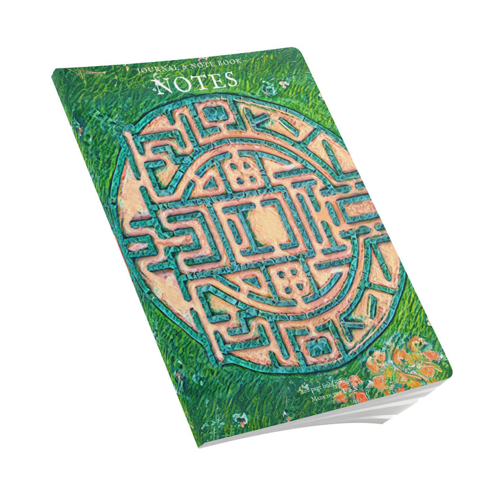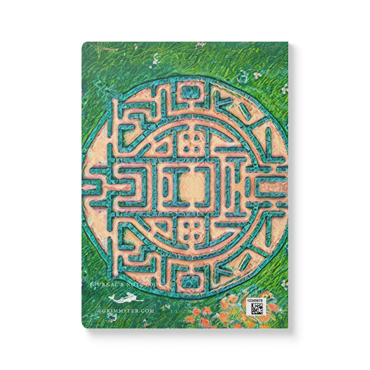 A Labyrinth inspired lined journal with vibrant colors and a soft satin finish cover. Perfect for creative souls looking to jot down their thoughts and ideas. Ideal for writers, artists, and dreamers. Relevant for birthdays, holidays, and special occasions.