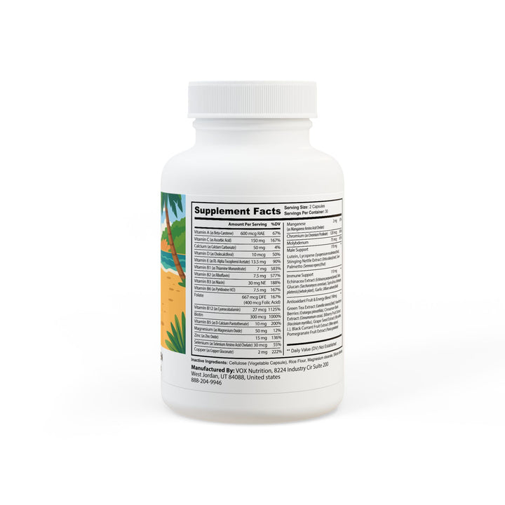 This non-GMO, corn-free, and lactose-free formula delivers complete daily nutritional support for men’s health and vitality.