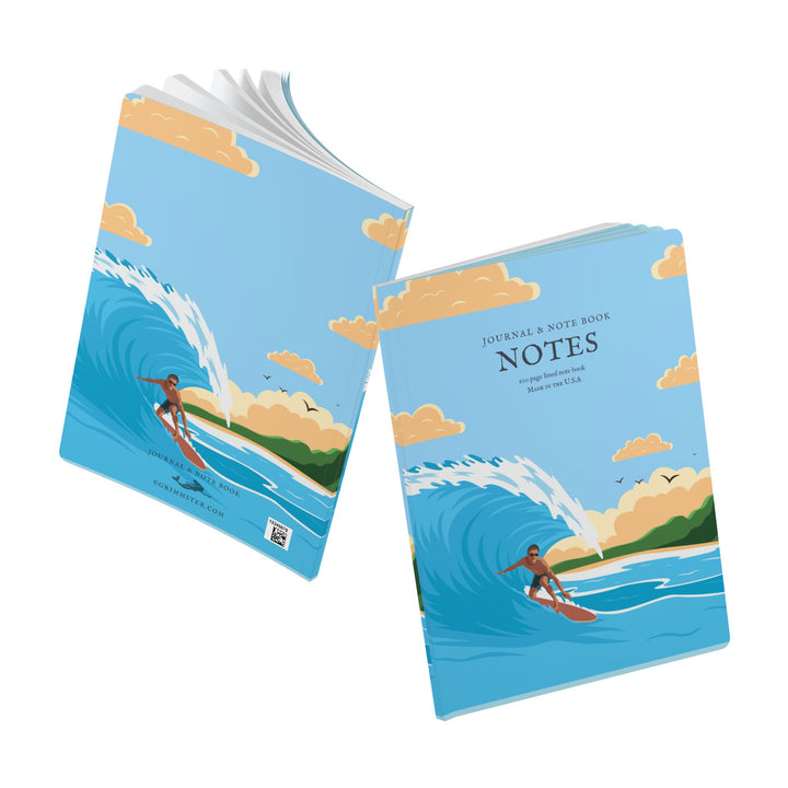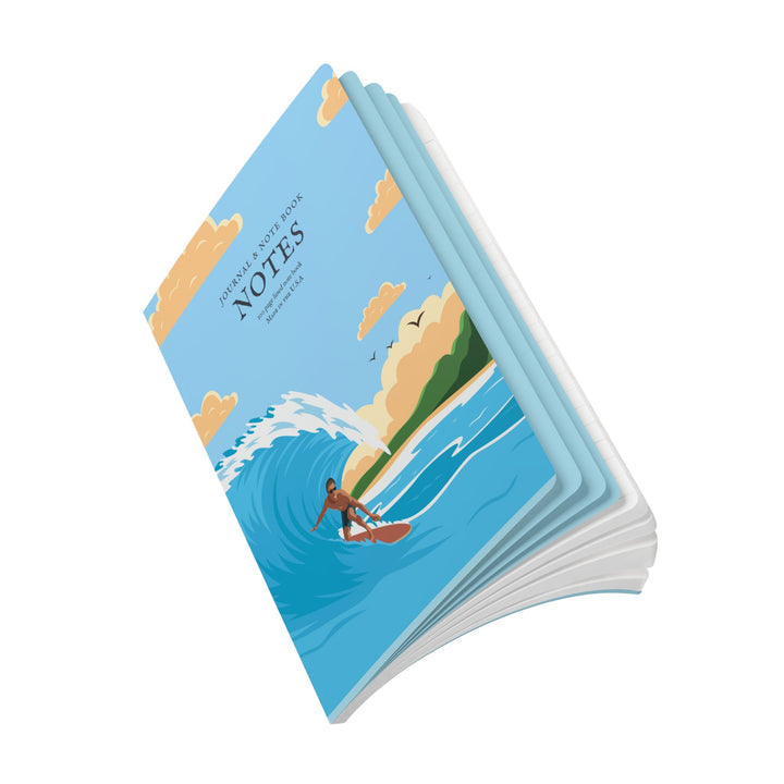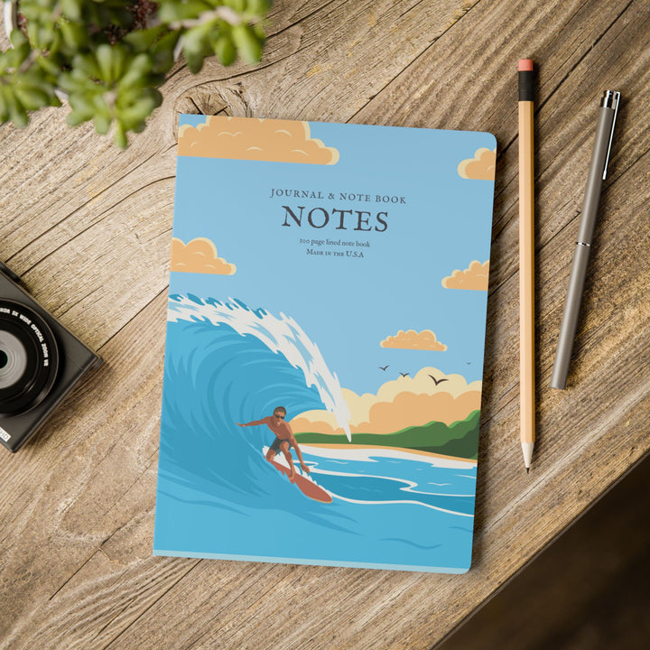 Capture the adventurous spirit with this Surfer themed journal featuring a surfer wearing sunglasses while surfing. The vibrant colors and soft satin finish cover with rounded corners give off a laid-back and beachy vibe. Perfect for surf enthusiasts, beach lovers, and anyone who enjoys a carefree lifestyle. Ideal for gifting on birthdays, holidays, and to those who need a little extra inspiration in their everyday life.