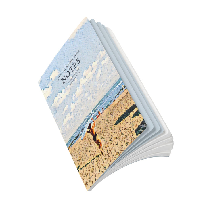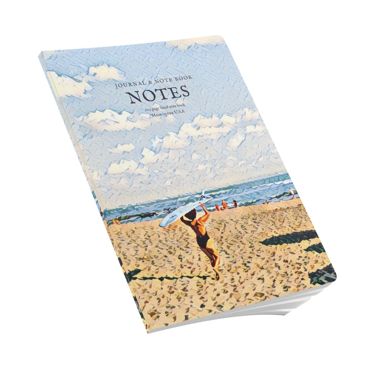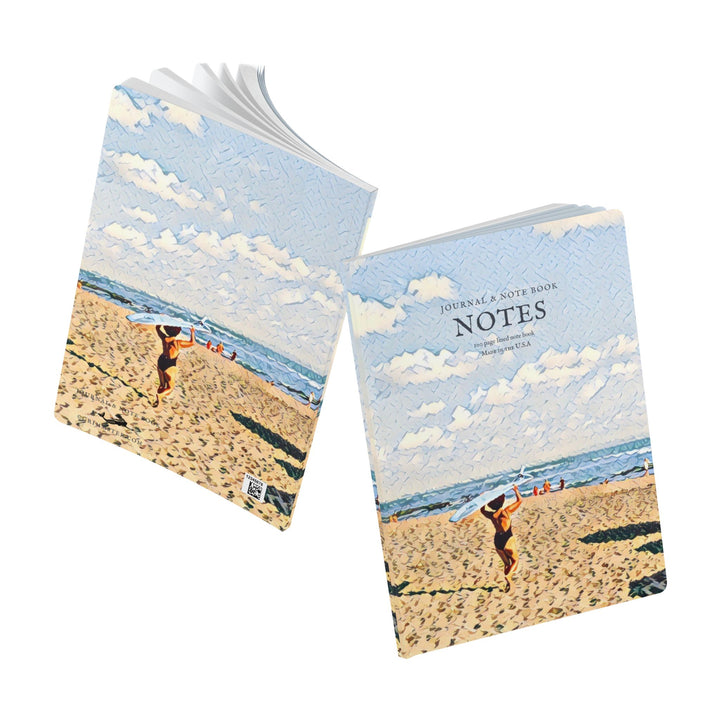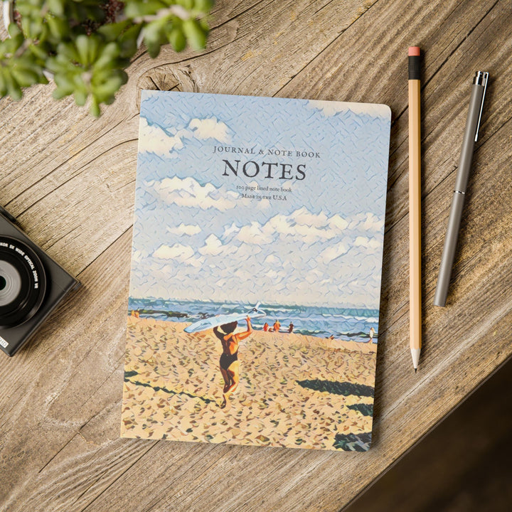 This vintage surfer girl Softcover Journal is perfect for anyone who loves the beach and surfing. The vibrant colors and soft satin finish cover give off a relaxed and laid-back vibe, making it a great addition to a beach lover's stationery collection. Ideal for jotting down thoughts, sketches, or to-do lists while enjoying the surf and sun. Perfect for summer vacations, beach trips, or as a gift for surf enthusiasts.
